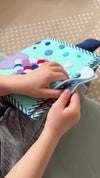 Ja, die Quiet Books können mit dem Namen des Kindes personalisiert werden. Dafür besticken oder plottern wir nach Wahl das Verschlussband des Quiet Books mit dem Namen des Kindes. Für die Bestickung des Namens sind lediglich Namen mit einer Länge von 7 Buchstaben möglich. Die Personalisierungsfunktion findest sich auf den einzelnen Produktseiten. Sollte die Funktion aktuell nicht verfügbar sein, so schreibe uns bitte eine E-Mail mit dem Namenswunsch.