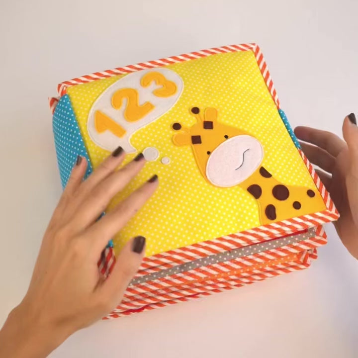 Le Quiet Book « 1, 2, 3 » transforme l’apprentissage des nombres en une aventure colorée et ludique. Ce livre d’éveil se compose de 10 pages interactives où les enfants découvrent les chiffres de 1 à 10, accompagnés d’animaux adorables, de formes colorées et de scènes du quotidien.