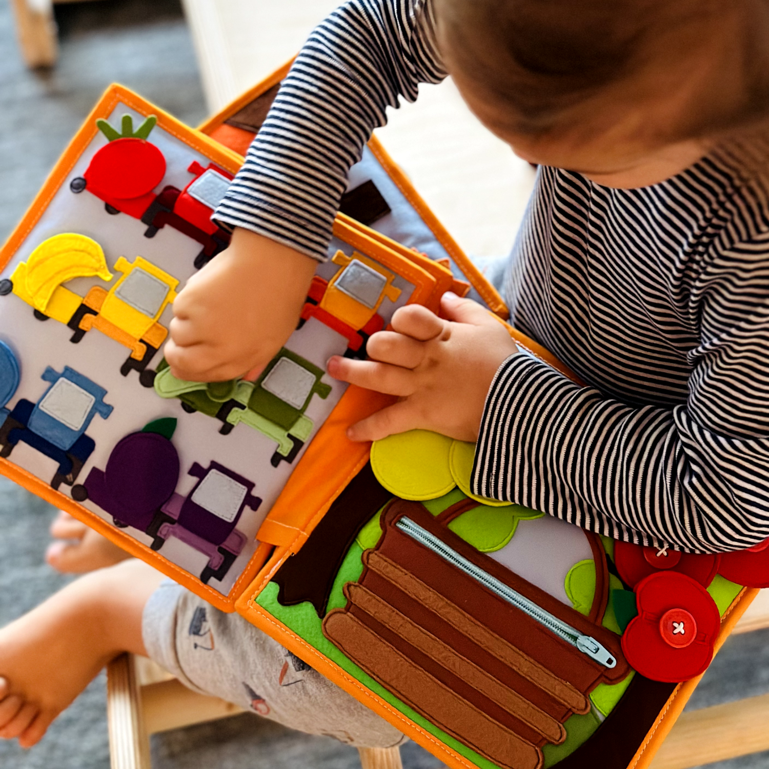 The Vegetable Farm Quiet Book, lovingly developed with Pumpkin Organics, invites little explorers ages 18 months and up on a colorful journey into the world of vegetables. Made from high-quality, OEKO-TEX®-certified materials, it's safe, durable, and sustainable—perfect for creative play.