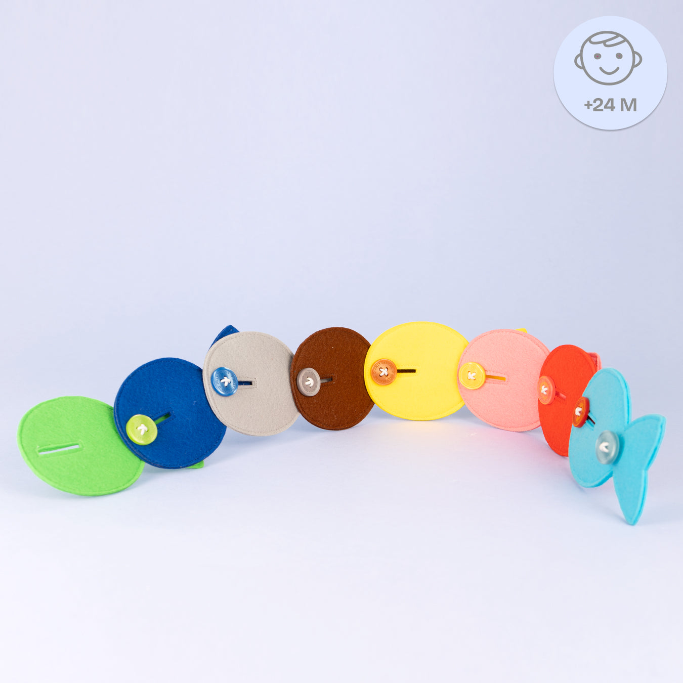 Each fish is made from soft, brightly colored felt and is easy to grasp. Every button challenges little fingers—perfect for playfully training hand-eye coordination and finger strength.