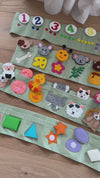 Inside multiple small pockets, colorful felt shapes are waiting to be discovered, named, and matched correctly — an educational toy that intuitively teaches colors and shapes. At the same time, it playfully promotes both gross and fine motor skills — all in line with the Montessori principle: clear tasks, big learning successes!